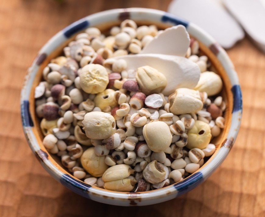 正四神燉料 內含蓮子、淮山、茯苓、芡實與薏仁。中藥材已調整成最佳比例,可整包入鍋燉煮湯品,用電鍋與米一同拌煮成飯或粥皆可。 |