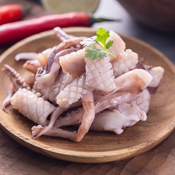 調理方式 魷魚切塊刻花為半熟凍,解凍退冰即可料理,適合川燙、快炒、酥炸等料理。