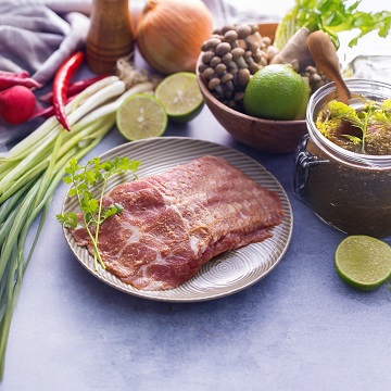 內容物 | 梅花肉*(台灣)、米酒(米、精製食用酒精)、濃野味噌*(非基因改造黃豆、米、鹽)、有機鹽麴*〔有機米(台灣)、水、鹽、釀造酒精〕、本土黑豆醬油*(水、本土黑豆、蔗糖、海鹽)、醇米霖*〔米麴發酵調味液(水、米、米麴、釀造酒精、釀造酢、鹽)、甘蔗液糖、釀造酢、鹽〕、冰糖、蒜泥、玉米澱粉(非基改)、胡椒粉(白胡椒、麥芽糊精、玉米澱粉、辣椒粉)、黑胡椒粒 |