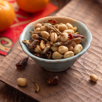 選用澎湖小魚乾製作,與十三香料粉搭配,製作出香酥可口的花生小魚;微辣風味讓人一口接一口,不膩口。