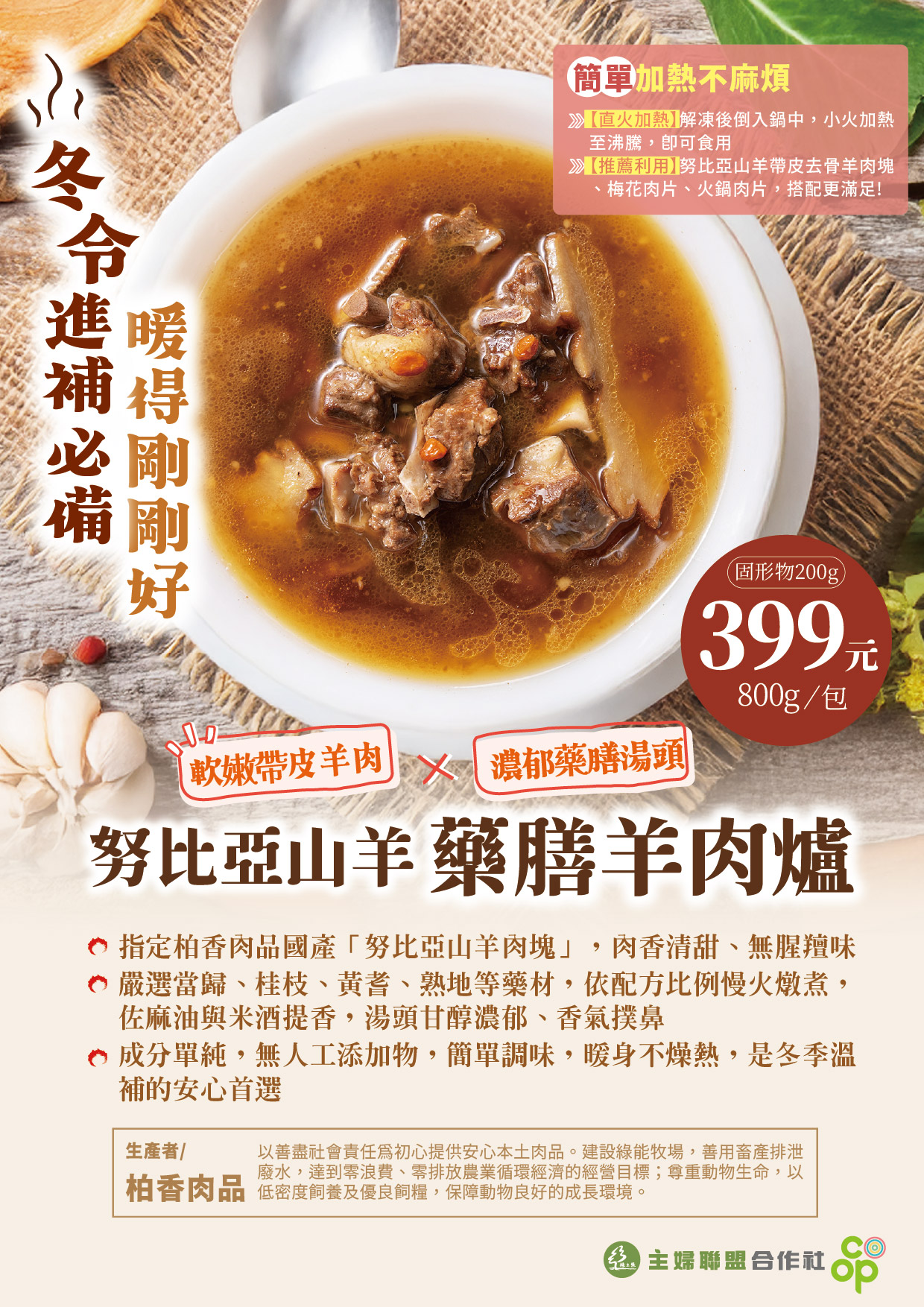 嚴選溫補中藥材,搭配軟嫩帶皮羊肉