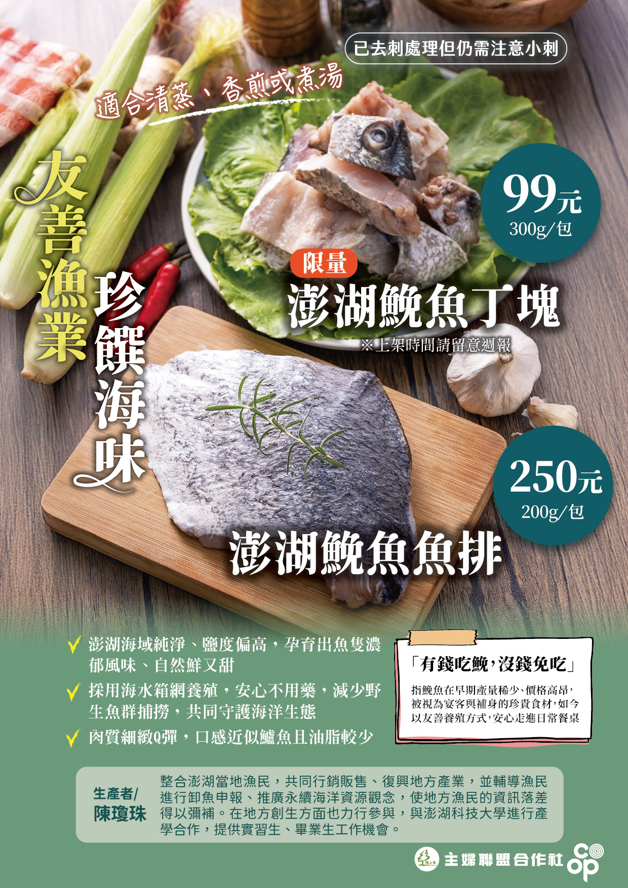 ●澎湖野生肉魚 (陳瓊珠) 185g/2尾 ,200元,3/9 全社供應